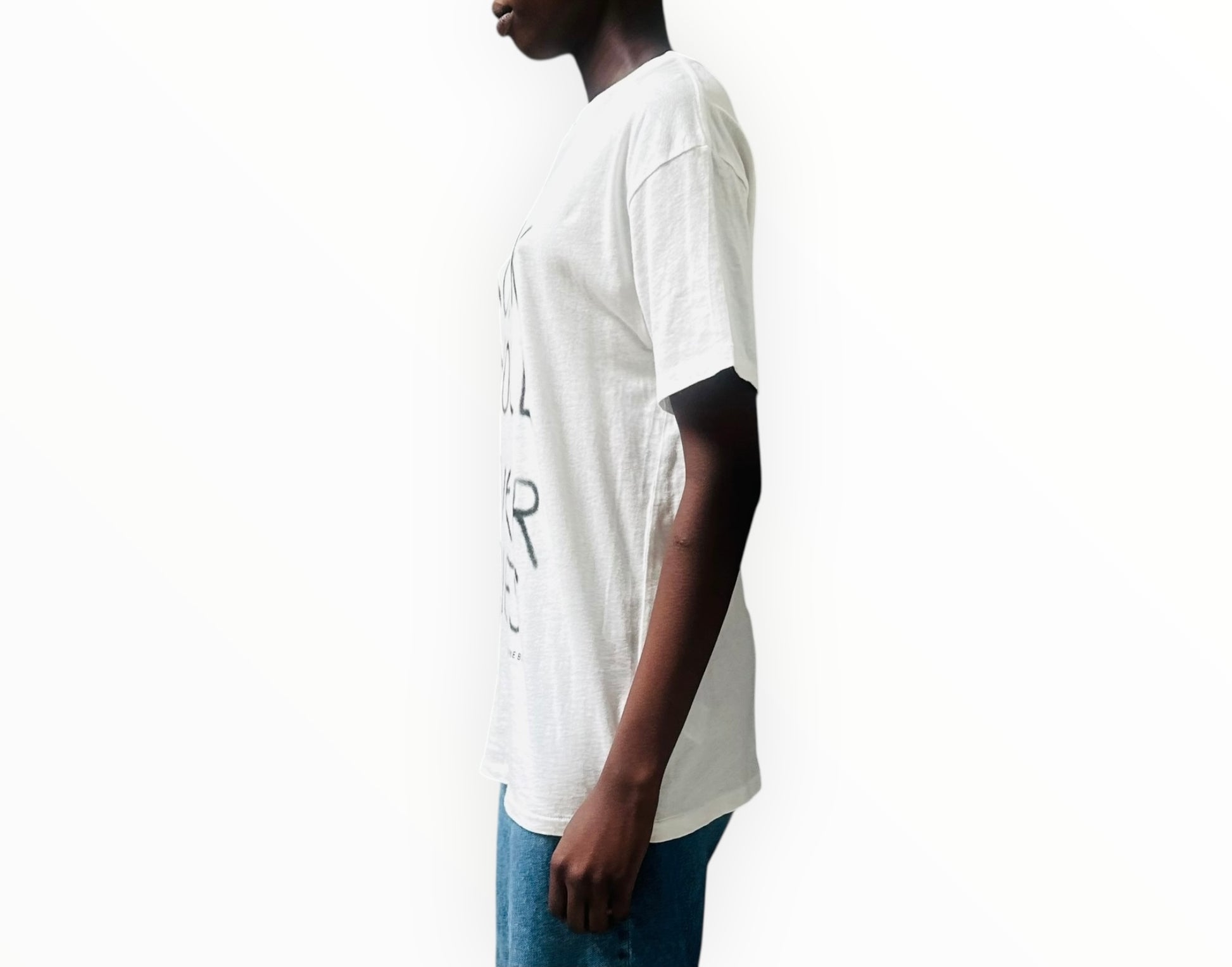 The Walker Tee Rock N Roll is made from a lightweight 100% organic cotton jersey fabric in a soft ivory wash with authentic, worn-in character. This style features a punk rock spray-painted graphic screen printed across the chest in black with ANINE BING branding.