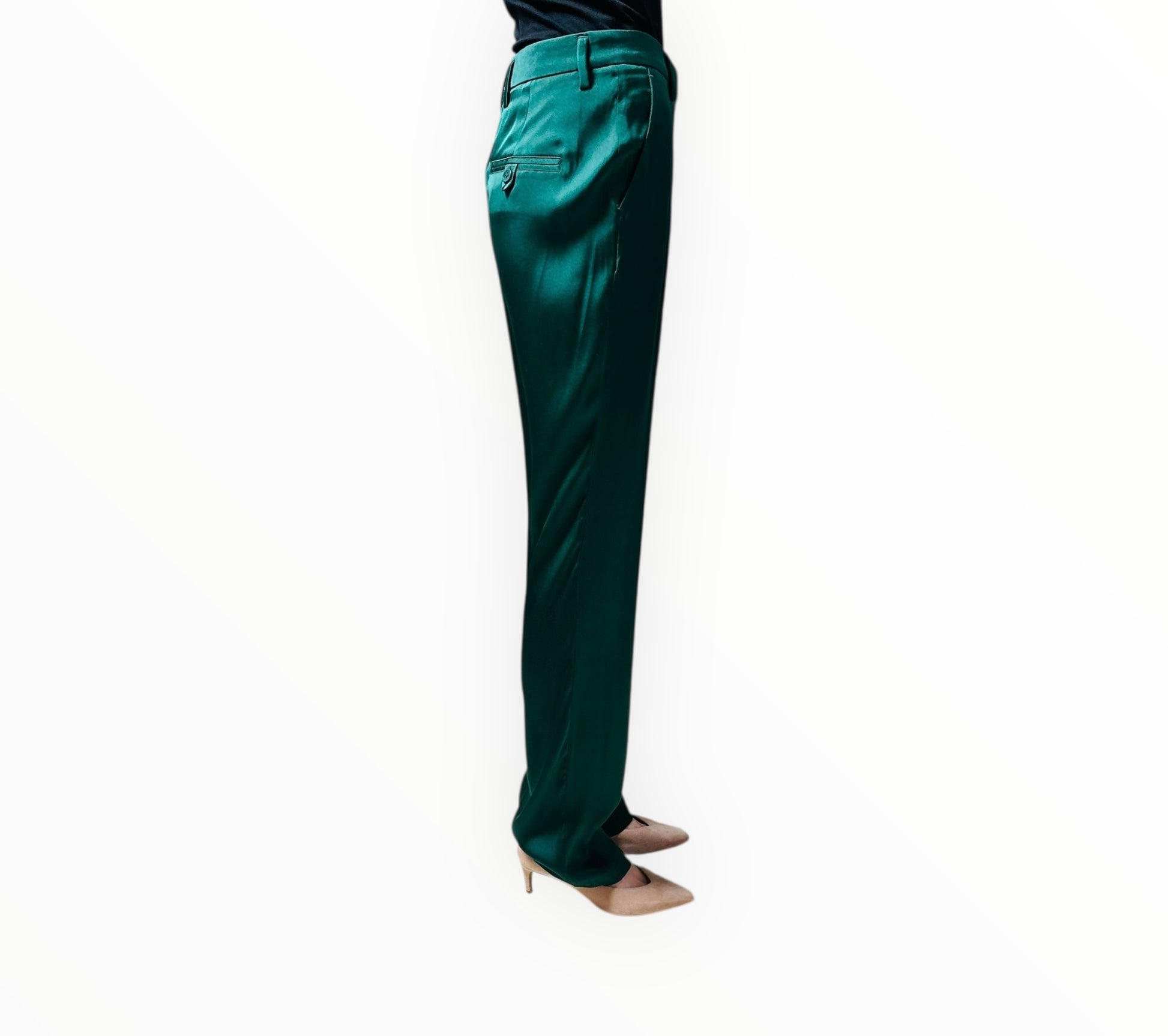 Anine Bing Silk Flat Front Pants - Forrest Green - Size 36