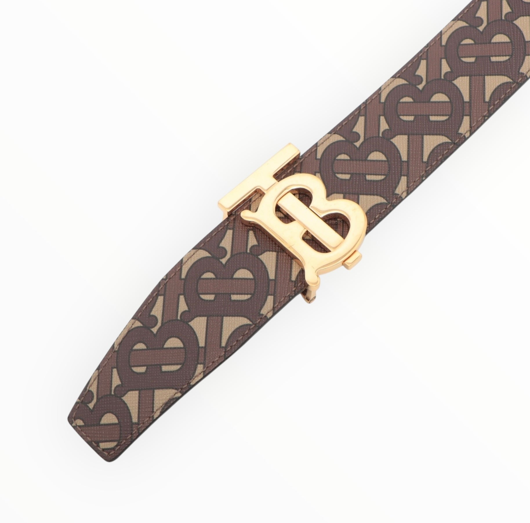 Beautiful monogram belt from Burberry featuring gold TB buckle.
