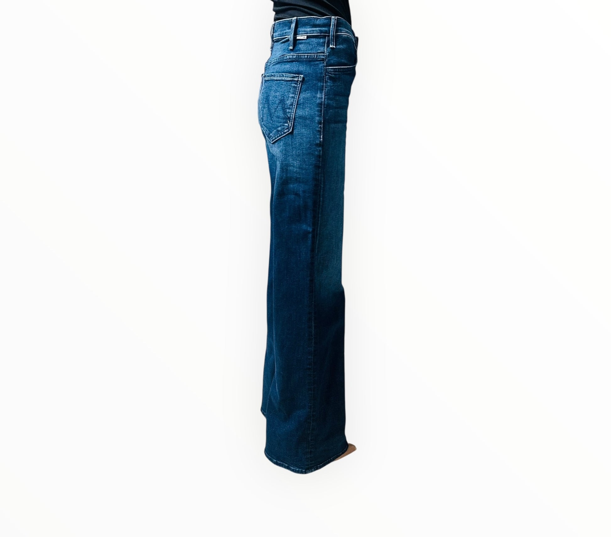 The Manuela Denim Jean features a flattering high-waisted design, offering a tailored fit through the waist and hips. Cutaway pockets with topstitching and branded rivets add subtle detailing.