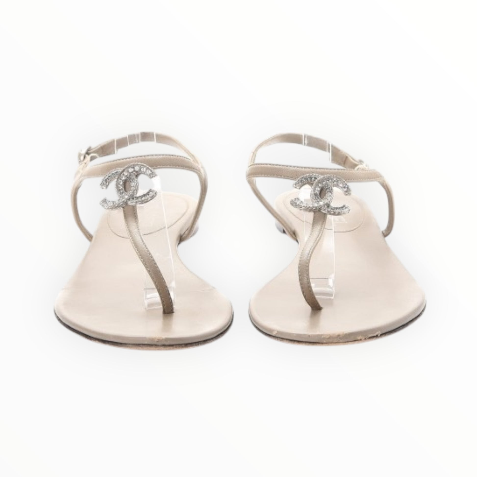 Chanel Thong Sandals with CC Logo - Beige - Size 39