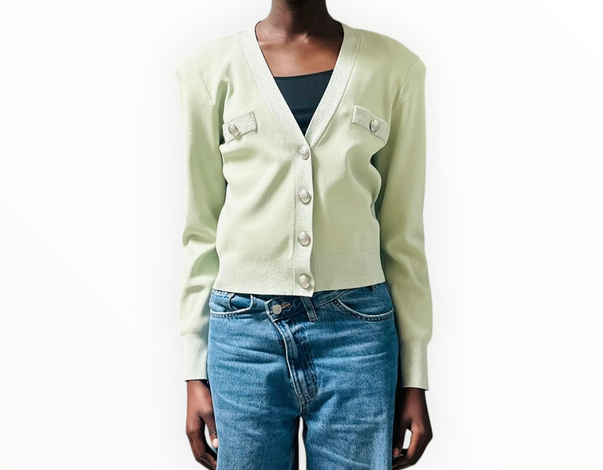 L'Agence Taya Cropped V-Neck Cardigan - Green Lurex - Size L