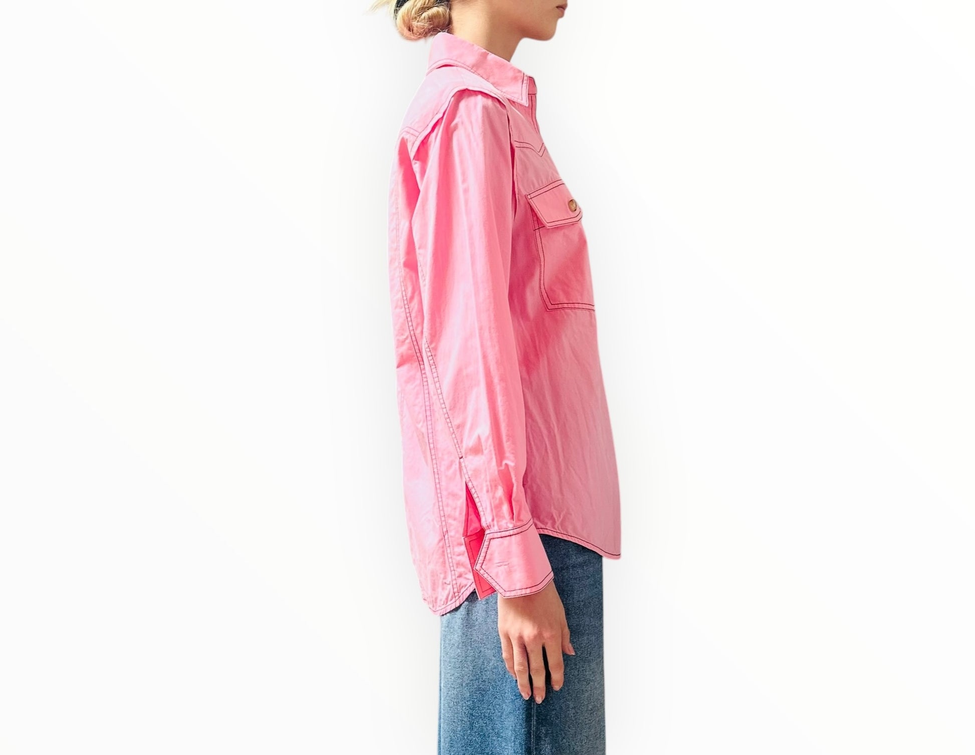 Lee Mathews Contrast Stitch Shirt - Pink/Red/ - Size 0