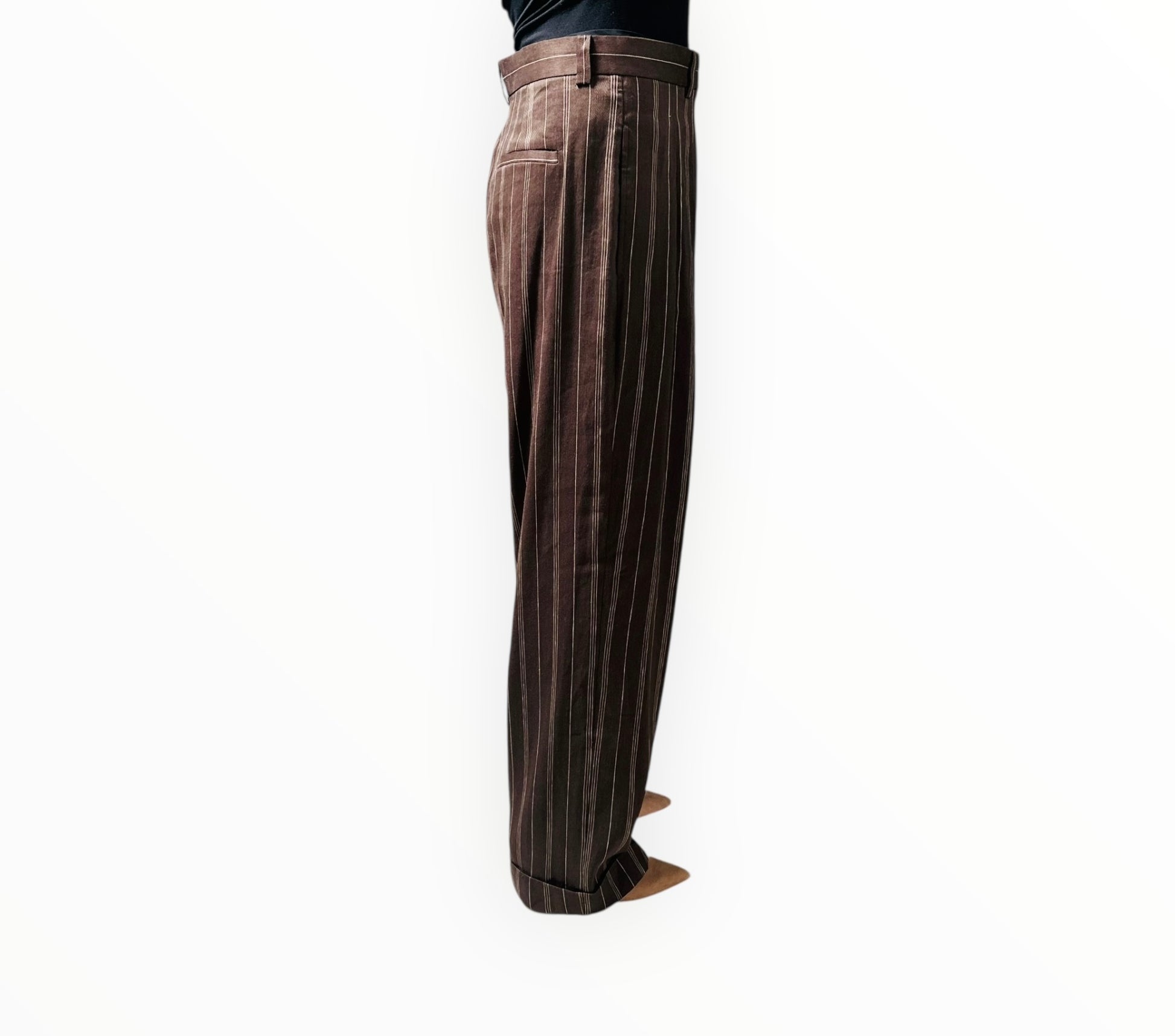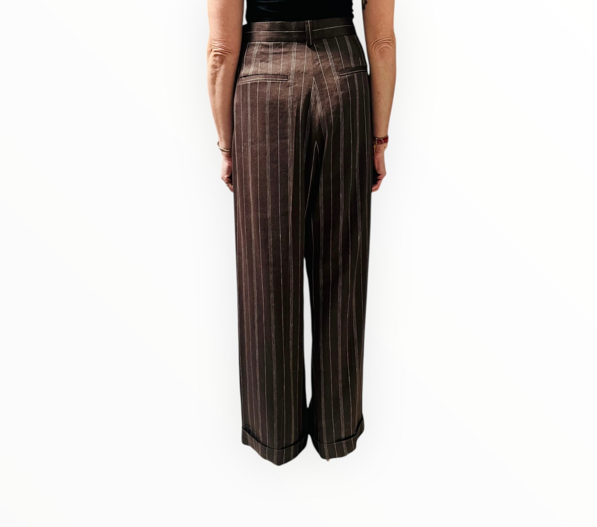 Lee Mathews Stripe Cuffed Pants - Brown - Size 4