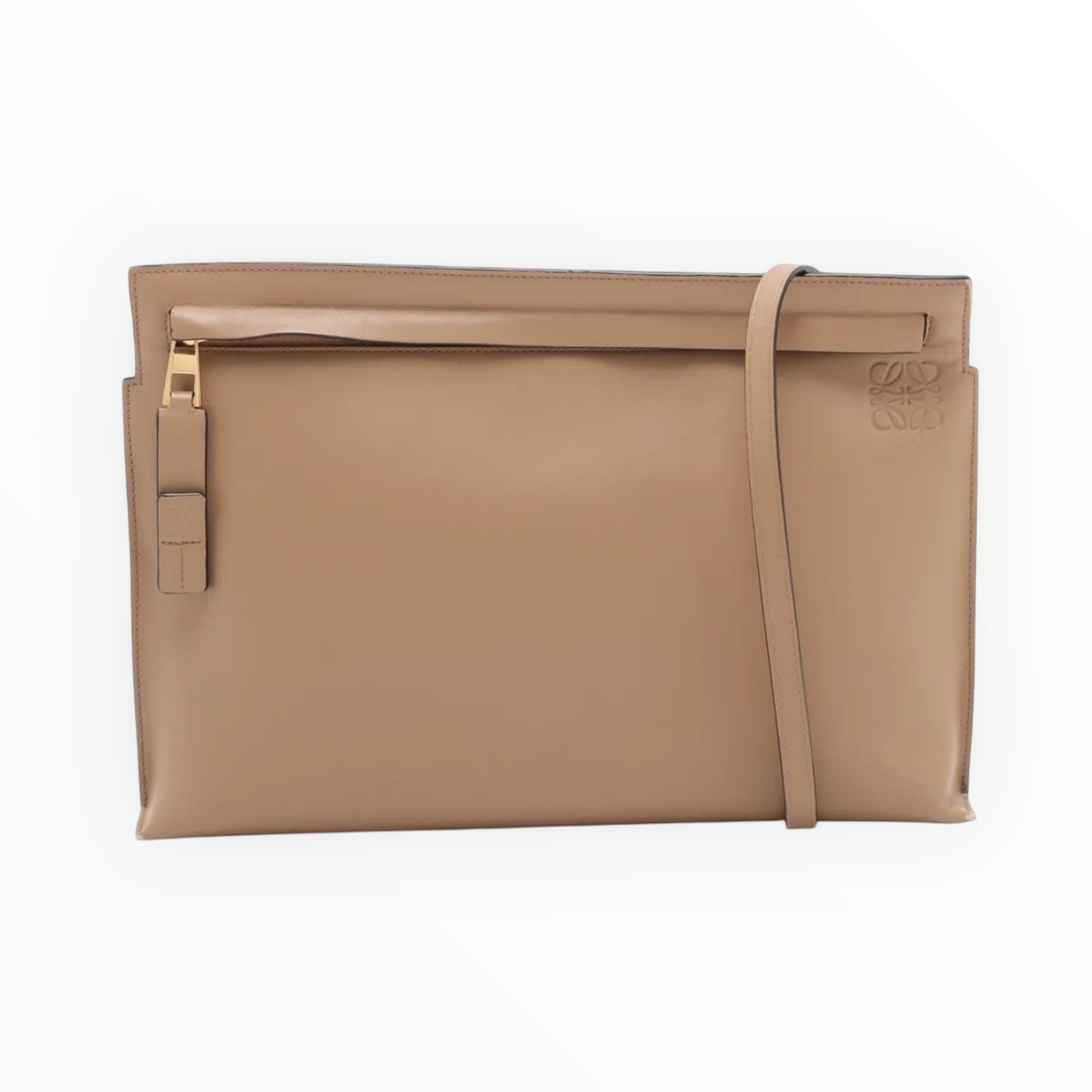Loewe T-Pouch Leather Crossbody - Tan - Size W29cm x H19.5cm x D4cm