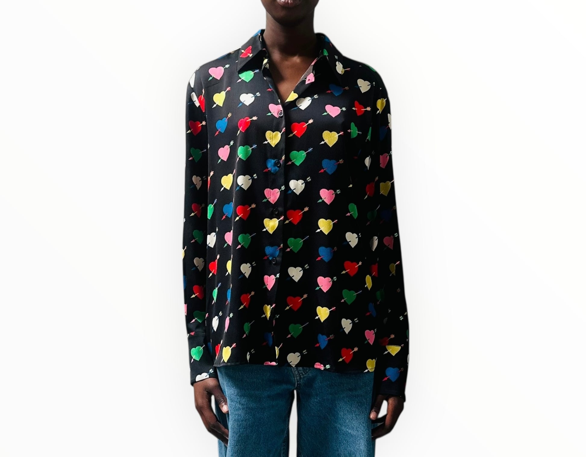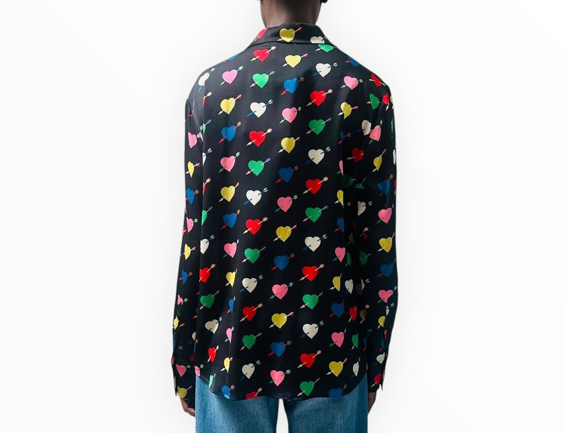 MSGM Heart Print Shirt - Black Multi - Size 42