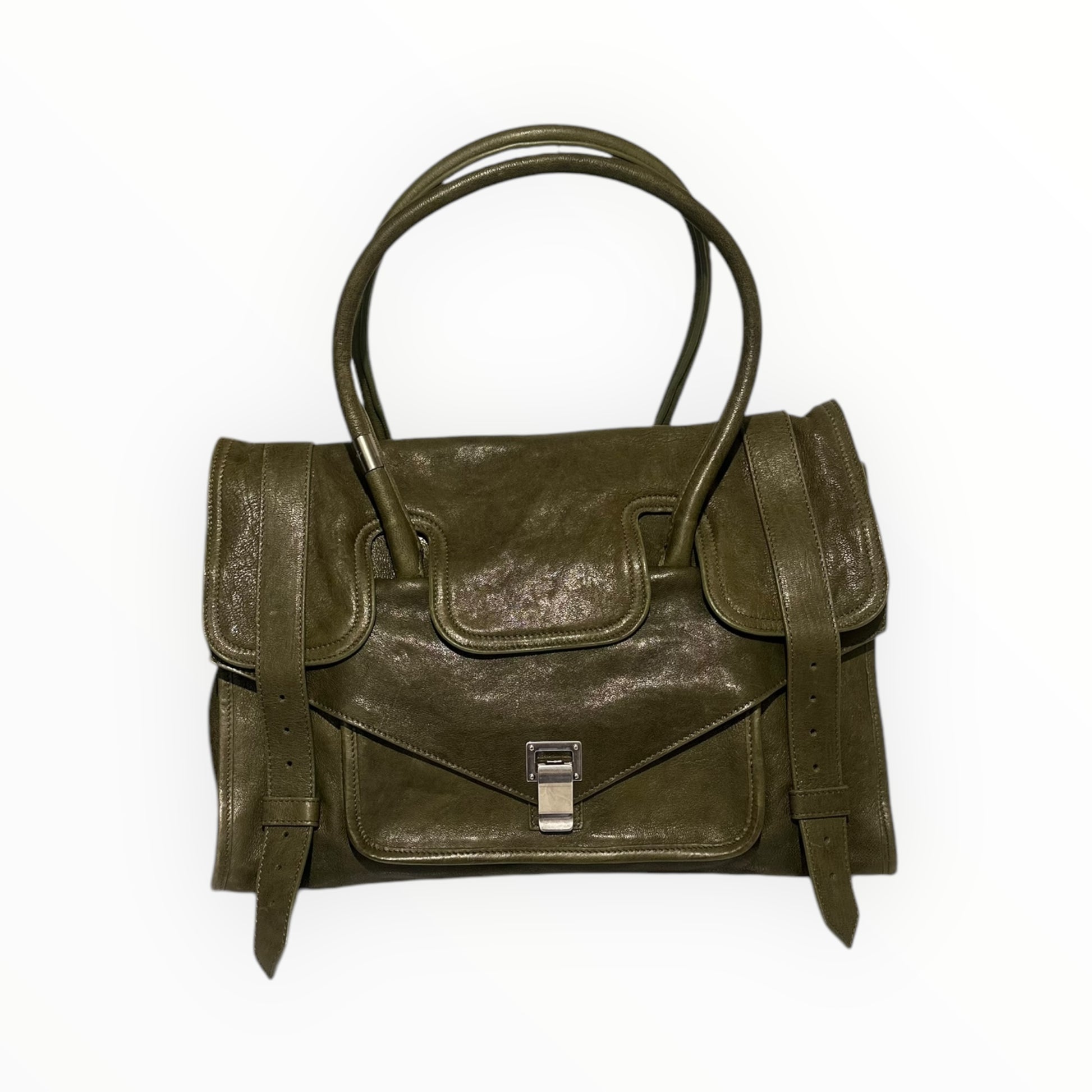 The PSI satchel from Proenza Schouler is a great everyday bag. With rolled handles and envelope-style flat front.