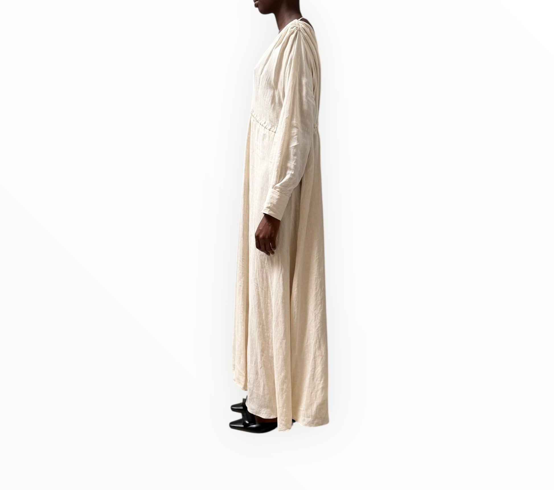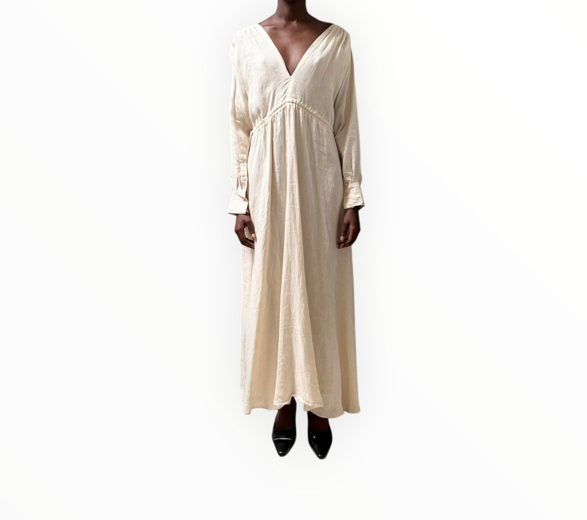 Beautiful linen dress from Scanlan Theodore with front split and double v back and front with tie detail.