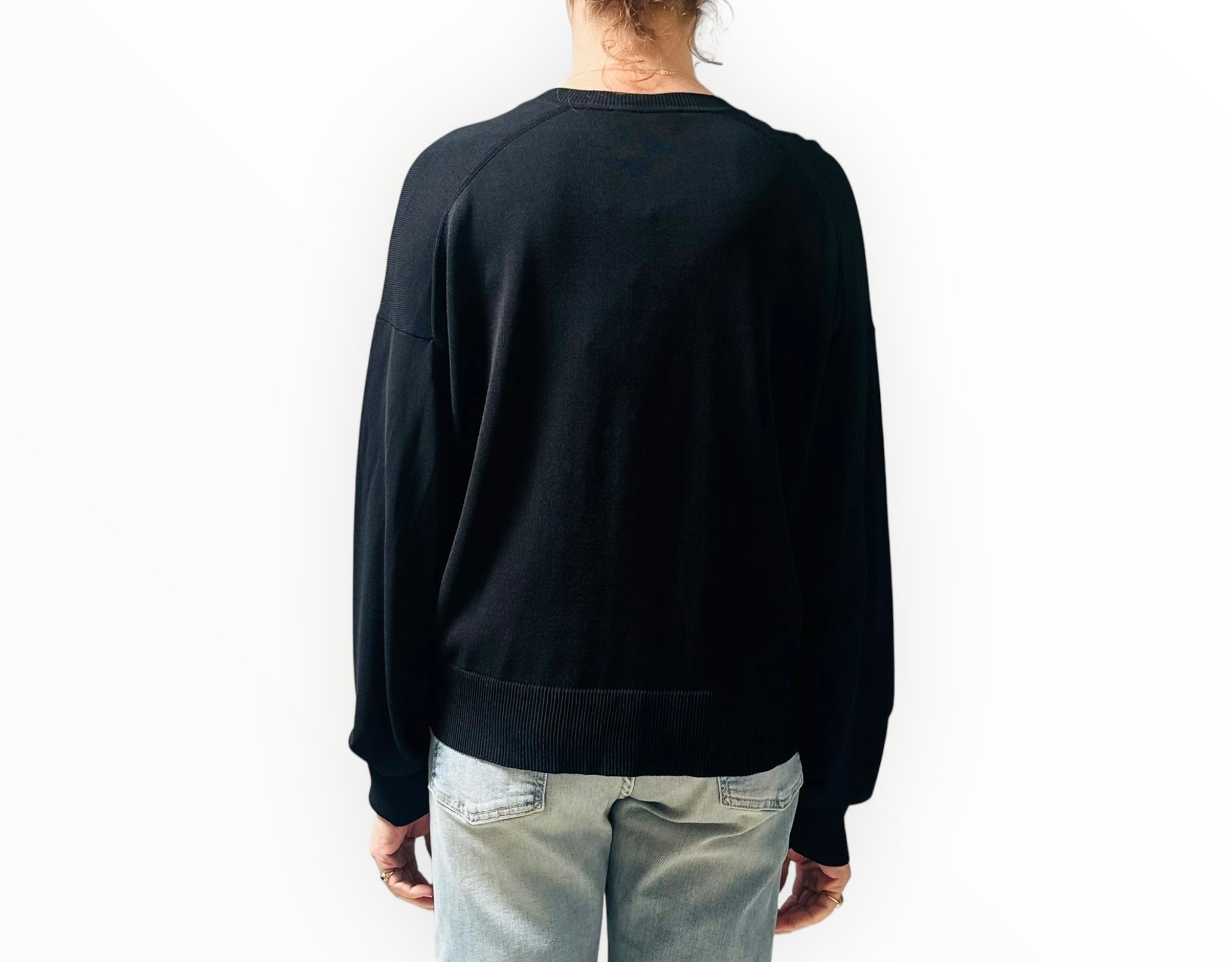 Scanlan Theodore Pleated Rib V-Neck Top- Black - Size M