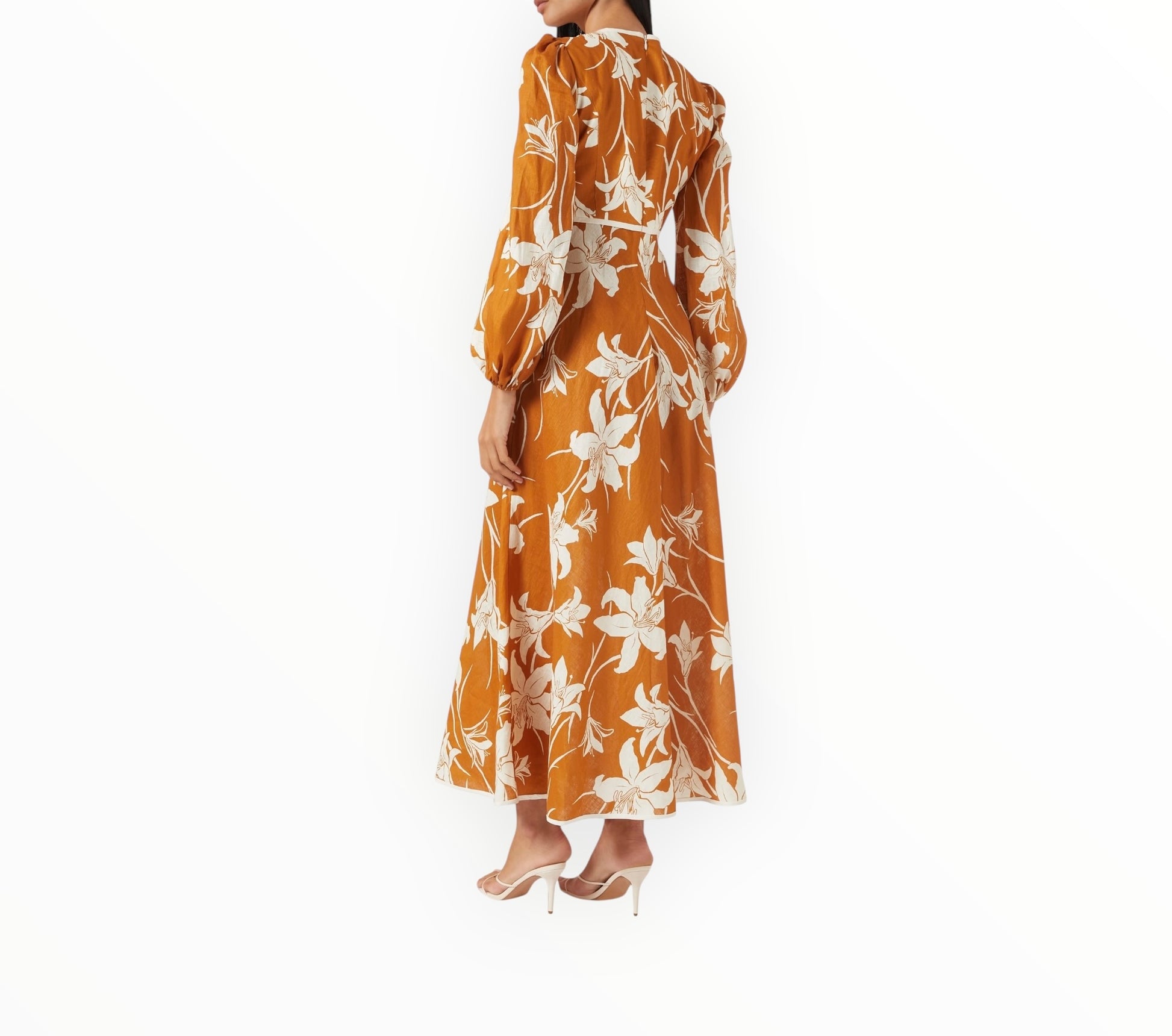 Zimmermann Acadian Floral Linen Maxi Dress - Dark Orange - Size 3