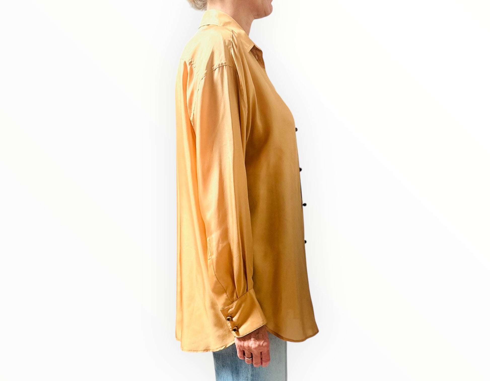 This silk satin weave long sleeve shirt by Zimmermann features front button fastening, button cuffs, curved hem and spread collar.