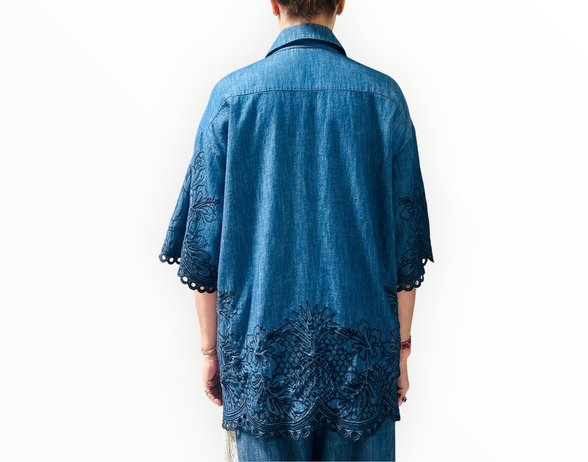 Zimmermann Denim Shirt with Embroidery Detail - Blue - Size 1