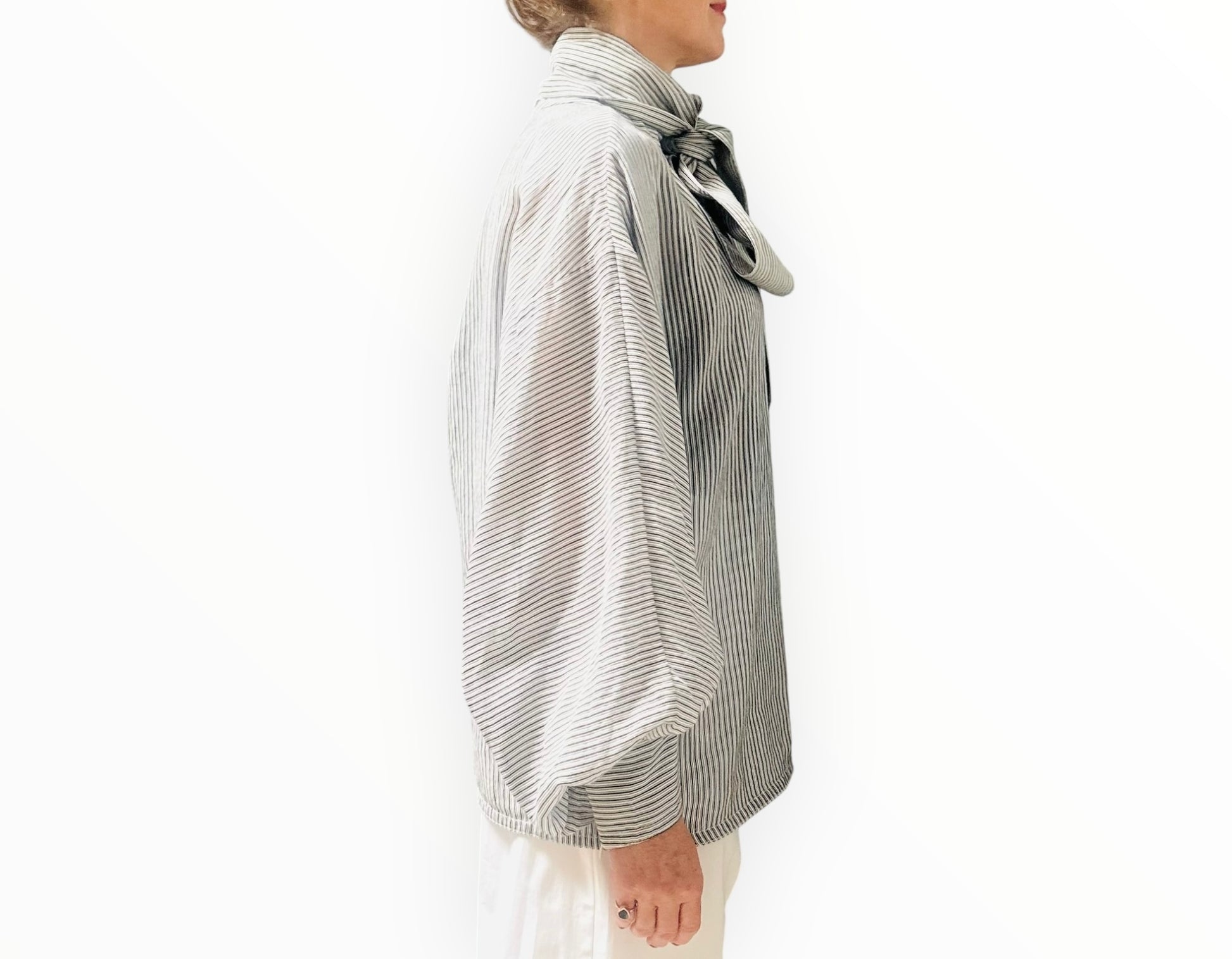Zimmermann Striped High Neck Shirt - Black/White - Size M